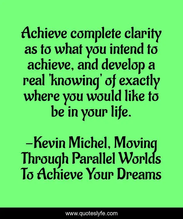 "Kevin Michel, Moving Through Parallel Worlds To Achieve Your Dreams Quotes." Quoteslyfe.com, 2025. Fri. 05 Dec. 2025. <https://www.quoteslyfe.com/quote/Achieve-complete-clarity-as-to-what-you-141204>.