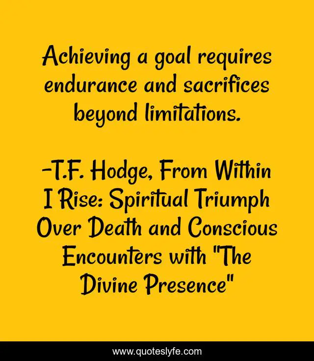 "T.F. Hodge, From Within I Rise: Spiritual Triumph Over Death and Conscious Encounters with "The Divine Presence" Quotes." Quoteslyfe.com, 2025. Mon. 08 Dec. 2025. <https://www.quoteslyfe.com/quote/Achieving-a-goal-requires-endurance-and-sacrifices-111512>.