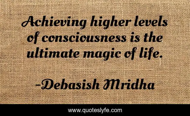 This page presents the quote "Achieving higher levels of consciousness is the ultimate magic of life.". Author of this quote is Debasish Mridha. This quote is about magic-of-life, consciousness, philosophy, debasish-mridha, quotes, inspirational, enthusiasm, debasish-mridha-m-d,.