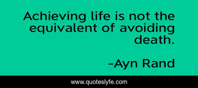 This page presents the quote "Achieving life is not the equivalent of avoiding death.". Author of this quote is Ayn Rand. .