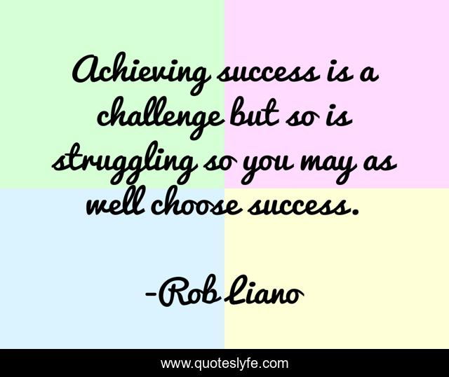 This page presents the quote "Achieving success is a challenge but so is struggling so you may as well choose success.". Author of this quote is Rob Liano. This quote is about motivation, rob-liano, rock-star, success, struggles, challenges,.