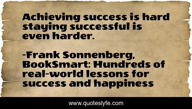 "Frank Sonnenberg, BookSmart: Hundreds of real-world lessons for success and happiness Quotes." Quoteslyfe.com, 2025. Sat. 06 Dec. 2025. <https://www.quoteslyfe.com/quote/Achieving-success-is-hard-staying-successful-is-33225>.