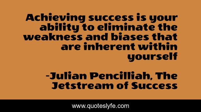 This page presents the quote "Achieving success is your ability to eliminate the weakness and biases that are inherent within yourself". Author of this quote is Julian Pencilliah, The Jetstream of Success. This quote is about weakness, success,.