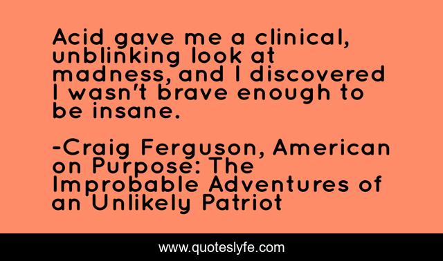 This page presents the quote "Acid gave me a clinical, unblinking look at madness, and I discovered I wasn't brave enough to be insane.". Author of this quote is Craig Ferguson, American on Purpose: The Improbable Adventures of an Unlikely Patriot. .