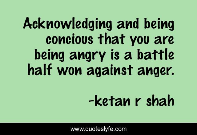 This page presents the quote "Acknowledging and being concious that you are being angry is a battle half won against anger.". Author of this quote is ketan r shah. This quote is about anger, angercontrol, anger-management,.