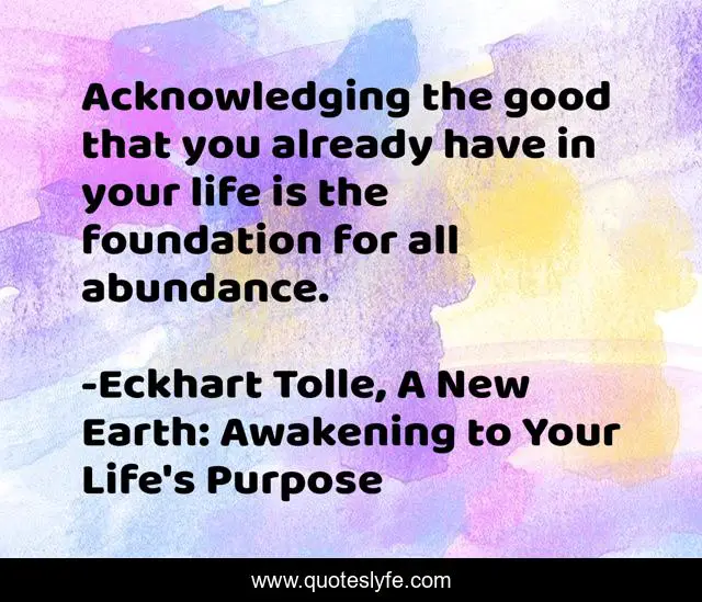"Eckhart Tolle, A New Earth: Awakening to Your Life's Purpose Quotes." Quoteslyfe.com, 2025. Fri. 05 Dec. 2025. <https://www.quoteslyfe.com/quote/Acknowledging-the-good-that-you-already-have-180097>.