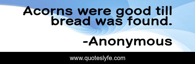 This page presents the quote "Acorns were good till bread was found.". Author of this quote is Anonymous. .