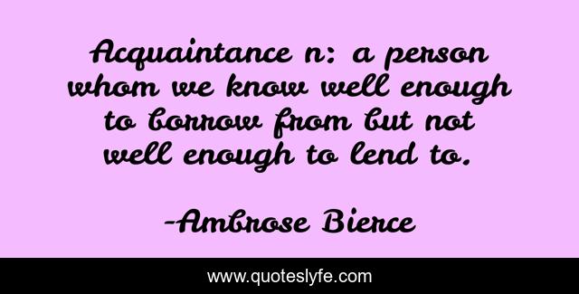 This page presents the quote "Acquaintance n: a person whom we know well enough to borrow from but not well enough to lend to.". Author of this quote is Ambrose Bierce. This quote is about human, relations,.