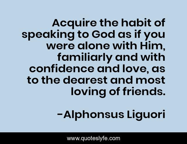 This page presents the quote "Acquire the habit of speaking to God as if you were alone with Him, familiarly and with confidence and love, as to the dearest and most loving of friends.". Author of this quote is Alphonsus Liguori. This quote is about love, confidence, friends, affection,.