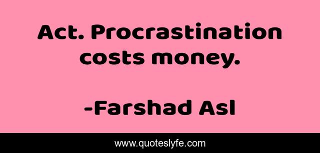 This page presents the quote "Act. Procrastination costs money.". Author of this quote is Farshad Asl. This quote is about action, procrastination,.