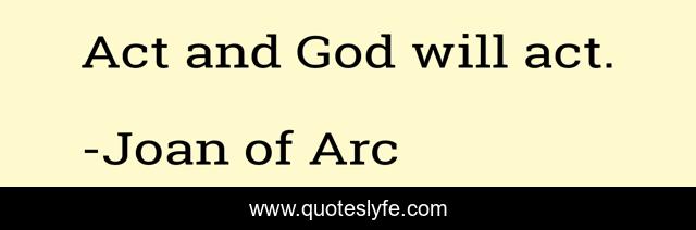 This page presents the quote "Act and God will act.". Author of this quote is Joan of Arc. .