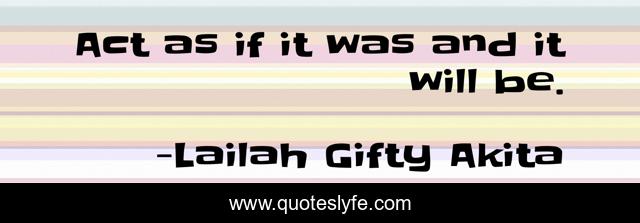 This page presents the quote "Act as if it was and it will be.". Author of this quote is Lailah Gifty Akita. This quote is about faith, self-determination, hope, encouragement, wishes, possibility, action, dreams, you-can,.