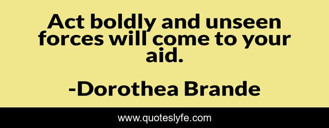 This page presents the quote "Act boldly and unseen forces will come to your aid.". Author of this quote is Dorothea Brande. .