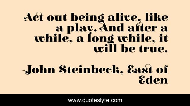 "John Steinbeck, East of Eden Quotes." Quoteslyfe.com, 2025. Fri. 05 Dec. 2025. <https://www.quoteslyfe.com/quote/Act-out-being-alive-like-a-play-172199>.