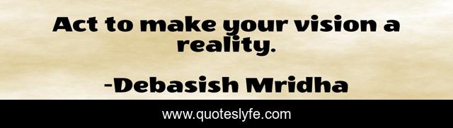 "Debasish Mridha Quotes." Quoteslyfe.com, 2025. Sat. 06 Dec. 2025. <https://www.quoteslyfe.com/quote/Act-to-make-your-vision-a-reality-23270>.