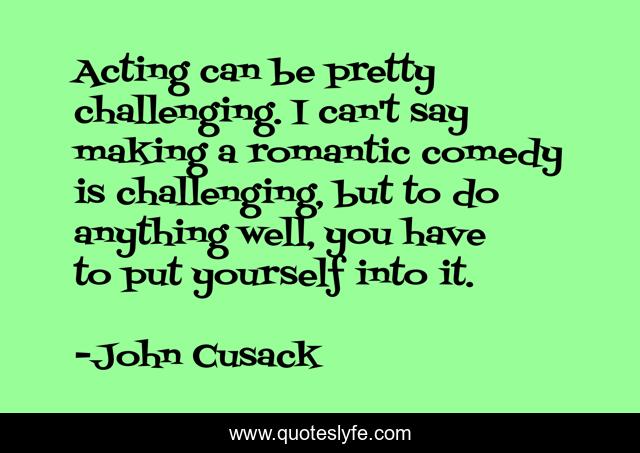 This page presents the quote "Acting can be pretty challenging. I can't say making a romantic comedy is challenging, but to do anything well, you have to put yourself into it.". Author of this quote is John Cusack. This quote is about acting, yourself,.