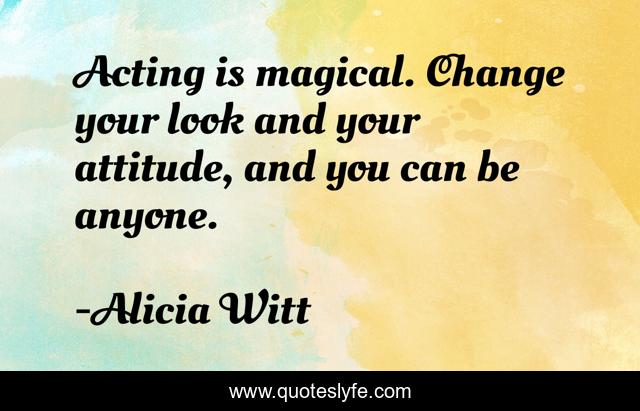 This page presents the quote "Acting is magical. Change your look and your attitude, and you can be anyone.". Author of this quote is Alicia Witt. This quote is about acting, change,.