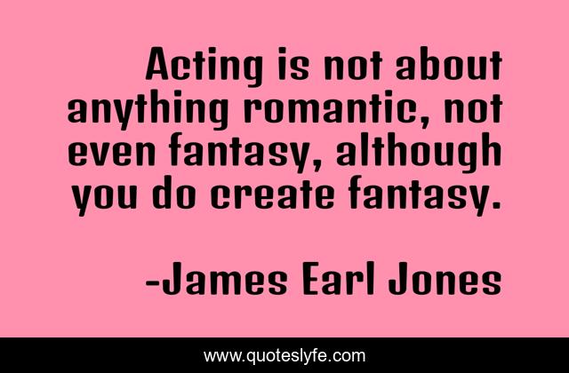 This page presents the quote "Acting is not about anything romantic, not even fantasy, although you do create fantasy.". Author of this quote is James Earl Jones. This quote is about fantasy, acting,.