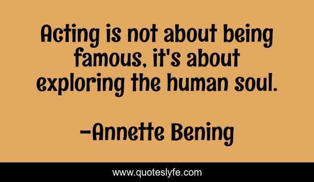 This page presents the quote "Acting is not about being famous, it's about exploring the human soul.". Author of this quote is Annette Bening. This quote is about movies, acting, soul,.