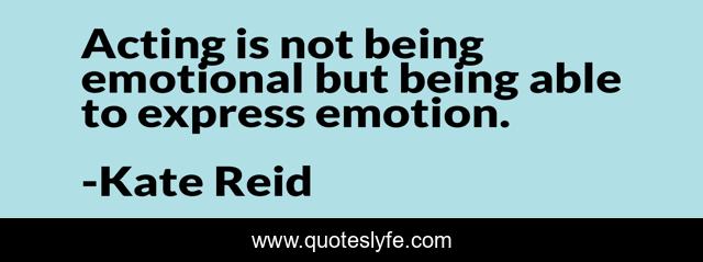 This page presents the quote "Acting is not being emotional but being able to express emotion.". Author of this quote is Kate Reid. This quote is about acting, theatre,.
