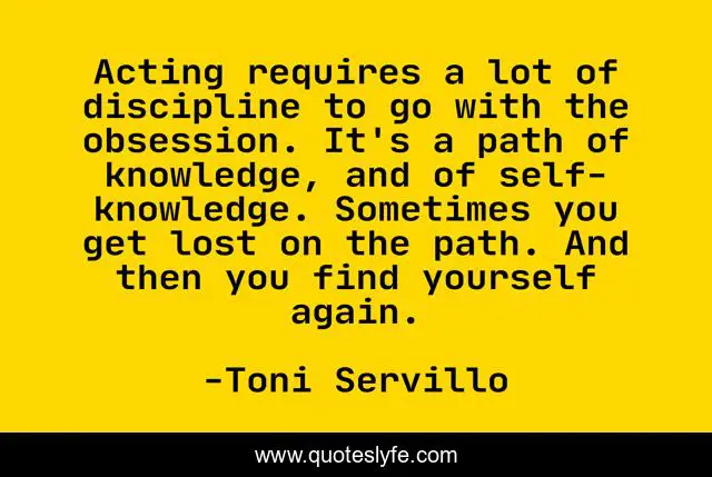 Acting requires a lot of discipline to go with the obsession. It's a path of knowledge, and of self-knowledge. Sometimes you get lost on the path. And then you find yourself again.