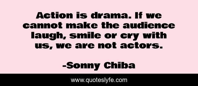This page presents the quote "Action is drama. If we cannot make the audience laugh, smile or cry with us, we are not actors.". Author of this quote is Sonny Chiba. This quote is about action, drama, laugh,.