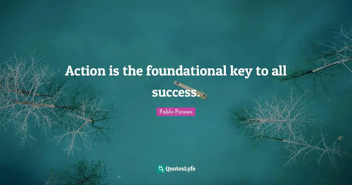 This page presents the quote "Action is the foundational key to all success.". Author of this quote is Pablo Picasso. This quote is about action, success, inspirational,.