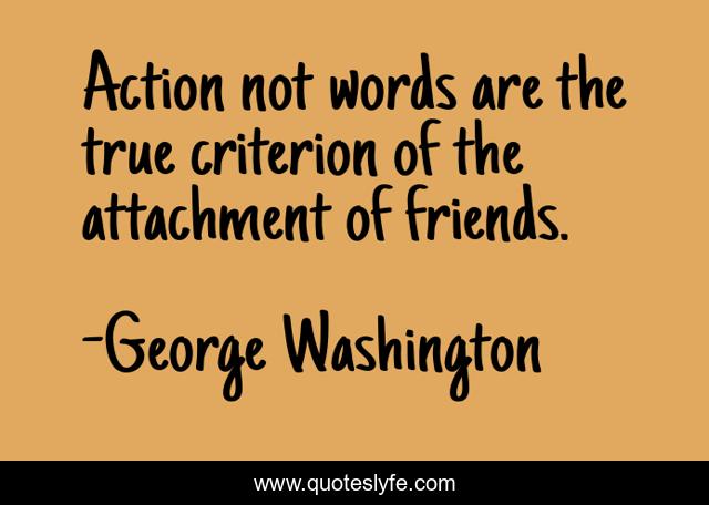 This page presents the quote "Action not words are the true criterion of the attachment of friends.". Author of this quote is George Washington. This quote is about going, getting,.