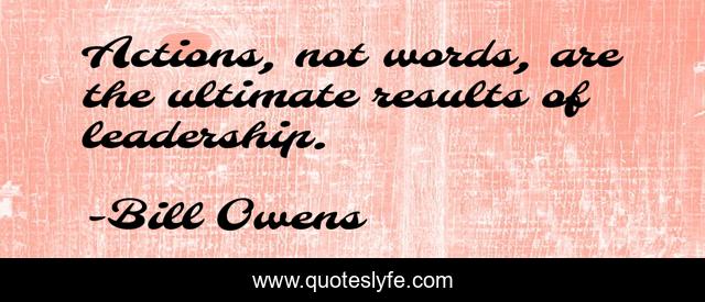 This page presents the quote "Actions, not words, are the ultimate results of leadership.". Author of this quote is Bill Owens. This quote is about words, results, actions,.
