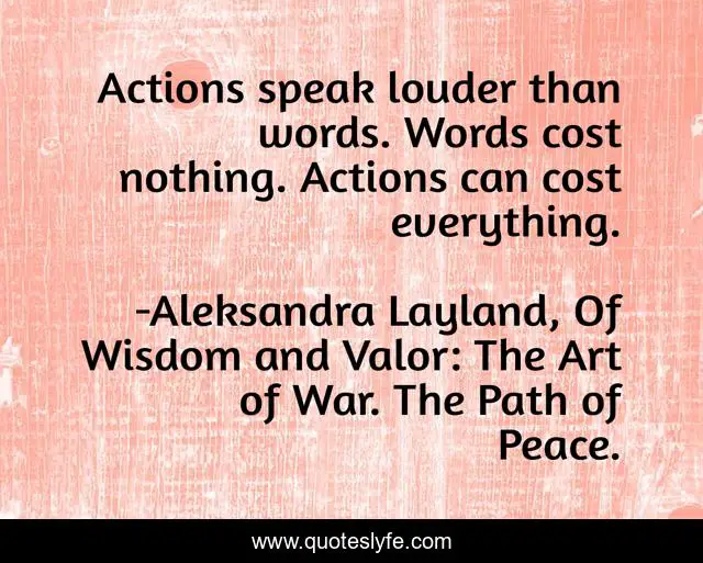 "Aleksandra Layland, Of Wisdom and Valor: The Art of War. The Path of Peace. Quotes." Quoteslyfe.com, 2025. Sun. 07 Dec. 2025. <https://www.quoteslyfe.com/quote/Actions-speak-louder-than-words-Words-cost-222173>.