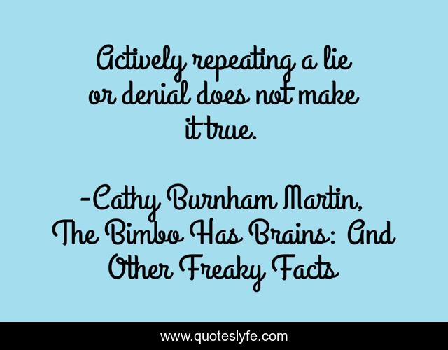 "Cathy Burnham Martin, The Bimbo Has Brains: And Other Freaky Facts Quotes." Quoteslyfe.com, 2025. Fri. 05 Dec. 2025. <https://www.quoteslyfe.com/quote/Actively-repeating-a-lie-or-denial-does-35726>.