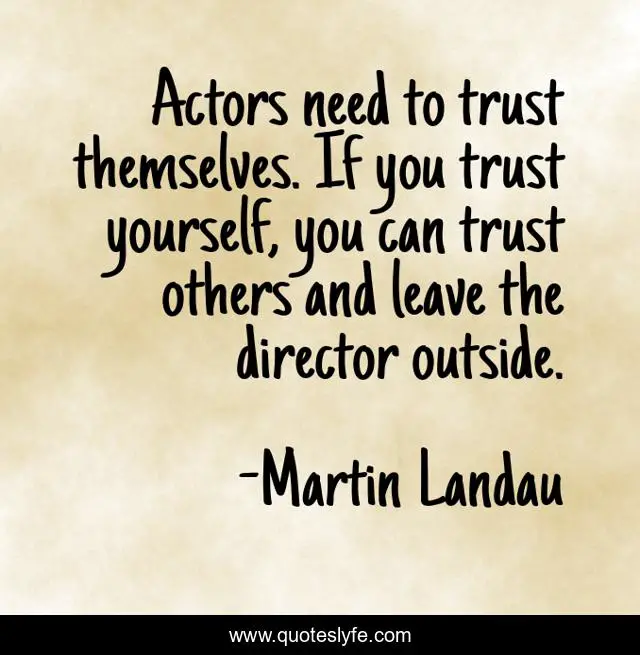 This page presents the quote "Actors need to trust themselves. If you trust yourself, you can trust others and leave the director outside.". Author of this quote is Martin Landau. This quote is about director, yourself,.