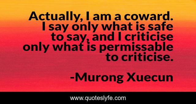 This page presents the quote "Actually, I am a coward. I say only what is safe to say, and I criticise only what is permissable to criticise.". Author of this quote is Murong Xuecun. This quote is about freedom-of-speech, literature,.