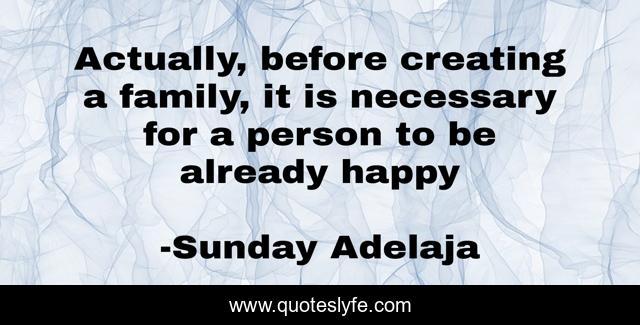 This page presents the quote "Actually, before creating a family, it is necessary for a person to be already happy". Author of this quote is Sunday Adelaja. This quote is about foundation, family, primary, person, happy, happiness, principal,.