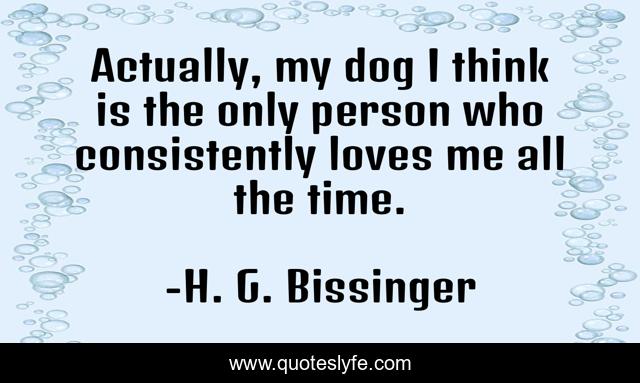 This page presents the quote "Actually, my dog I think is the only person who consistently loves me all the time.". Author of this quote is H. G. Bissinger. This quote is about me, dog, time,.