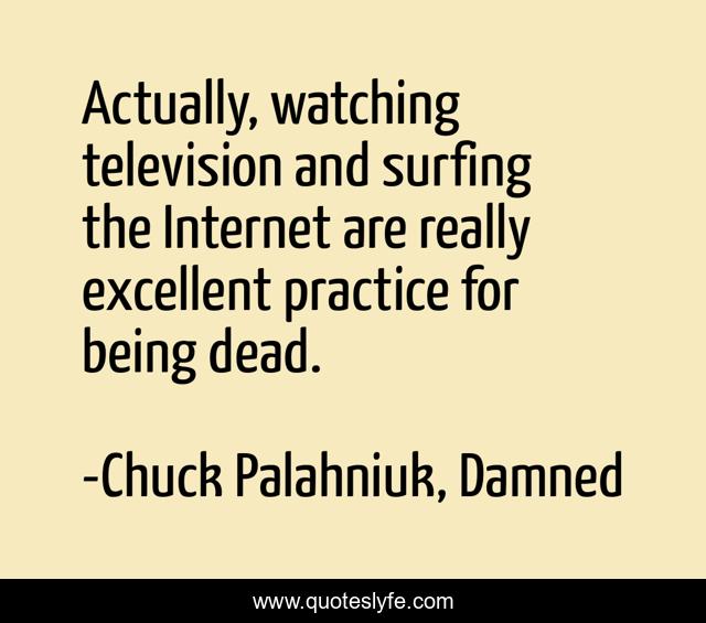This page presents the quote "Actually, watching television and surfing the Internet are really excellent practice for being dead.". Author of this quote is Chuck Palahniuk, Damned. This quote is about television, death, humor, humorous, wisdom, internet, wisdom-in-fiction, death-and-dying,.