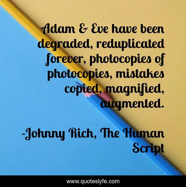 "Johnny Rich, The Human Script Quotes." Quoteslyfe.com, 2025. Mon. 08 Dec. 2025. <https://www.quoteslyfe.com/quote/Adam-Eve-have-been-degraded-reduplicated-forever-216759>.