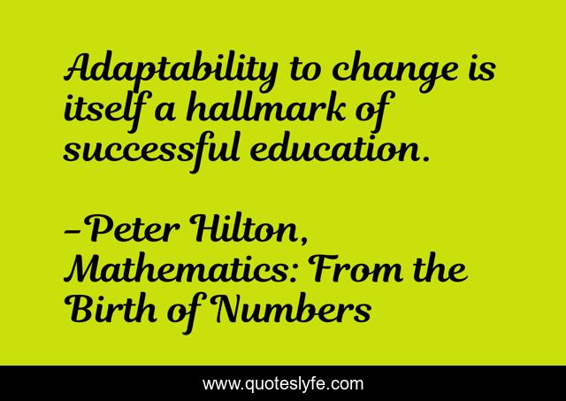 This page presents the quote "Adaptability to change is itself a hallmark of successful education.". Author of this quote is Peter Hilton, Mathematics: From the Birth of Numbers. This quote is about mathematics, education, change,.