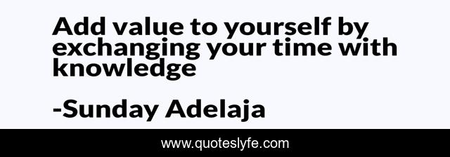 This page presents the quote "Add value to yourself by exchanging your time with knowledge". Author of this quote is Sunday Adelaja. This quote is about life, blessing, finance, money, work, wisdom, time-well-spent, job, joblessness,.