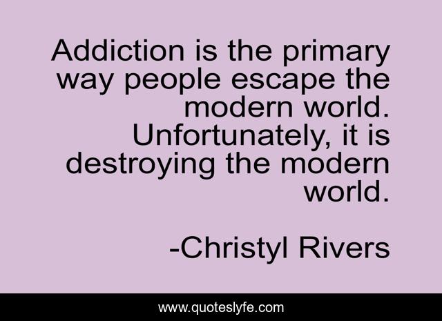 This page presents the quote "Addiction is the primary way people escape the modern world. Unfortunately, it is destroying the modern world.". Author of this quote is Christyl Rivers. This quote is about climate, humor, alcohol, drugs, diet, self-improvement, suffering-of-humanity, earth, addiction,.