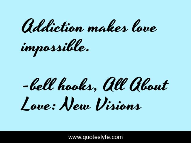 This page presents the quote "Addiction makes love impossible.". Author of this quote is bell hooks, All About Love: New Visions. This quote is about addiction, love, affection,.