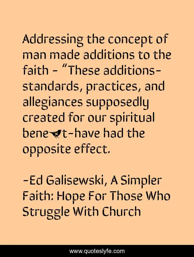 "Ed Galisewski, A Simpler Faith: Hope For Those Who Struggle With Church Quotes." Quoteslyfe.com, 2025. Fri. 05 Dec. 2025. <https://www.quoteslyfe.com/quote/Addressing-the-concept-of-man-made-additions-25959>.