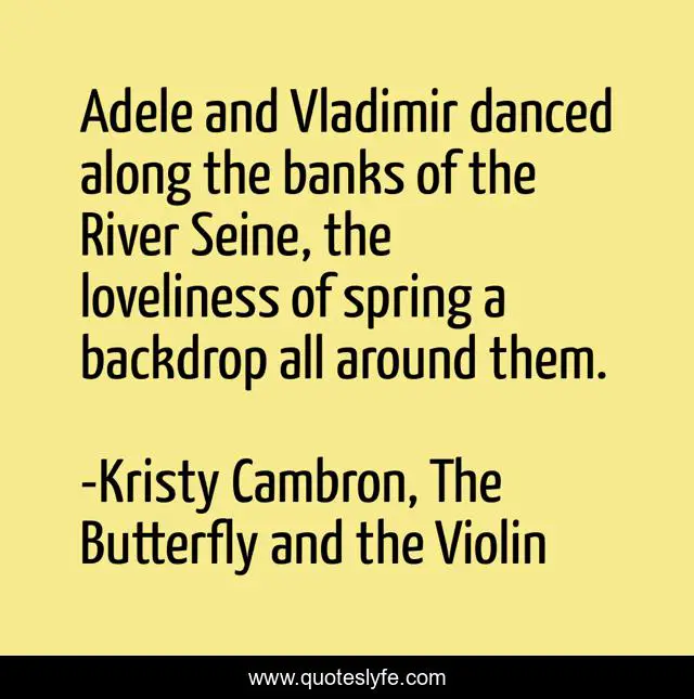 "Kristy Cambron, The Butterfly and the Violin Quotes." Quoteslyfe.com, 2025. Tue. 09 Dec. 2025. <https://www.quoteslyfe.com/quote/Adele-and-Vladimir-danced-along-the-banks-280747>.