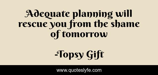"Topsy Gift Quotes." Quoteslyfe.com, 2025. Sat. 06 Dec. 2025. <https://www.quoteslyfe.com/quote/Adequate-planning-will-rescue-you-from-the-236780>.