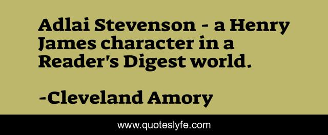 This page presents the quote "Adlai Stevenson - a Henry James character in a Reader's Digest world.". Author of this quote is Cleveland Amory. This quote is about celebrities, fame,.