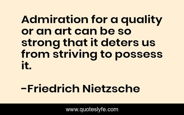 This page presents the quote "Admiration for a quality or an art can be so strong that it deters us from striving to possess it.". Author of this quote is Friedrich Nietzsche. This quote is about appreciation, admiration, obstacles, distraction,.