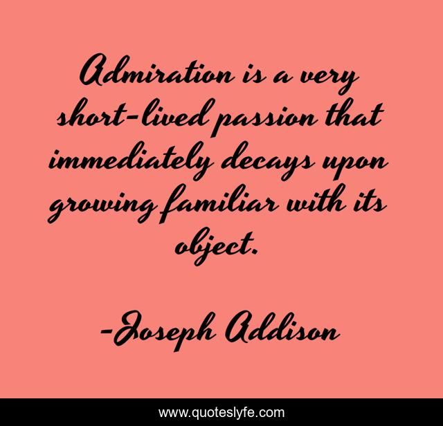 This page presents the quote "Admiration is a very short-lived passion that immediately decays upon growing familiar with its object.". Author of this quote is Joseph Addison. .