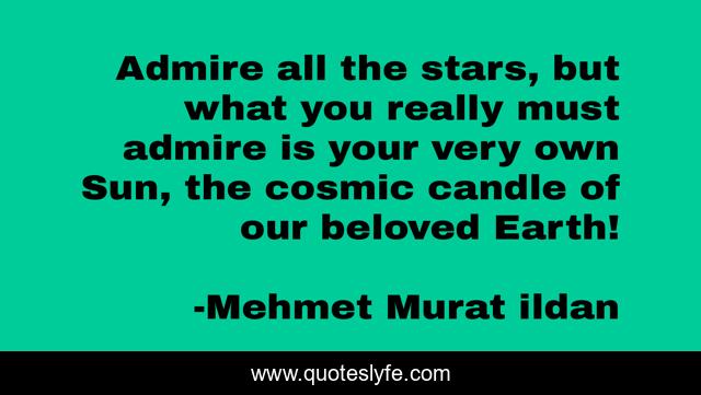 This page presents the quote "Admire all the stars, but what you really must admire is your very own Sun, the cosmic candle of our beloved Earth!". Author of this quote is Mehmet Murat ildan. .