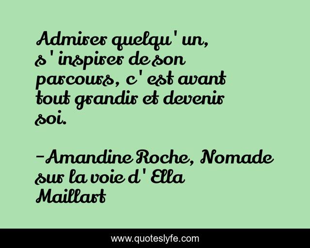 This page presents the quote "Admirer quelqu'un, s'inspirer de son parcours, c'est avant tout grandir et devenir soi.". Author of this quote is Amandine Roche, Nomade sur la voie d'Ella Maillart. .