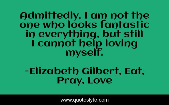 This page presents the quote "Admittedly, I am not the one who looks fantastic in everything, but still I cannot help loving myself.". Author of this quote is Elizabeth Gilbert, Eat, Pray, Love. .